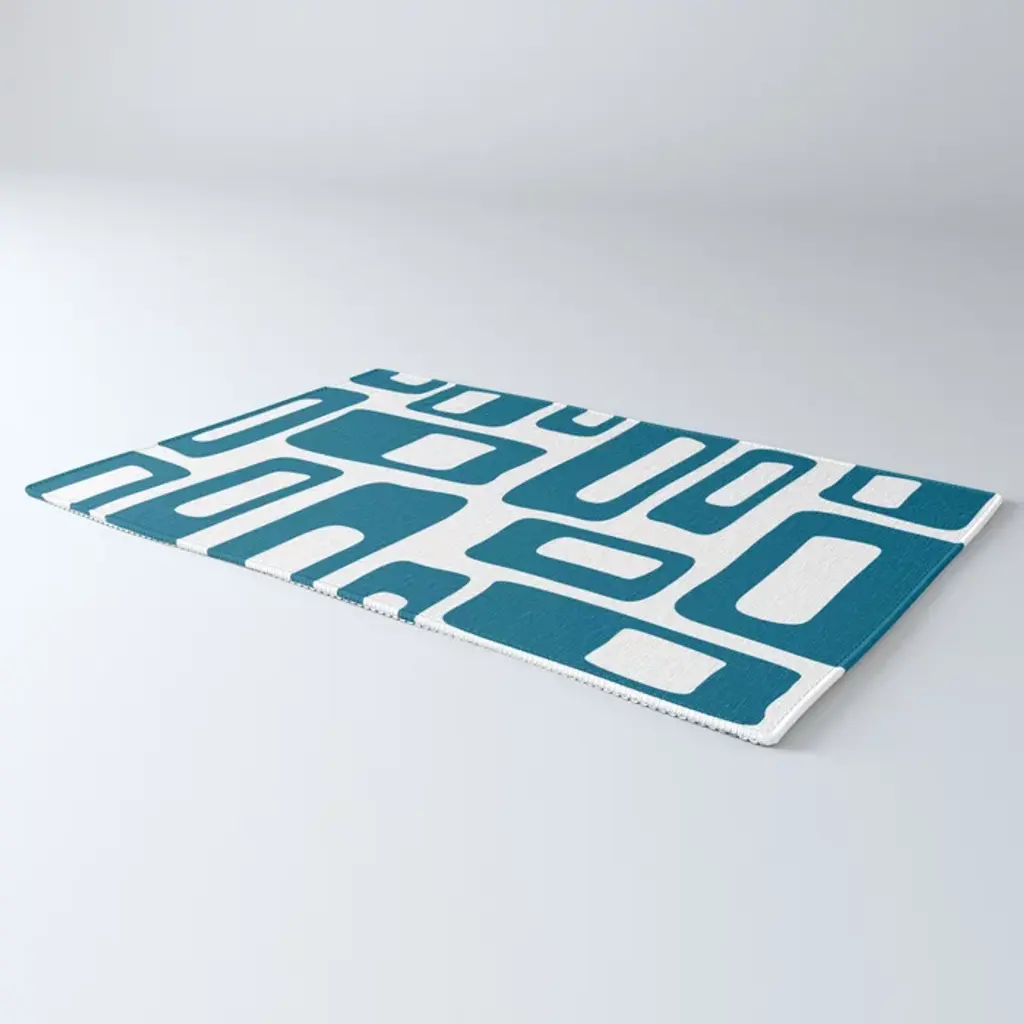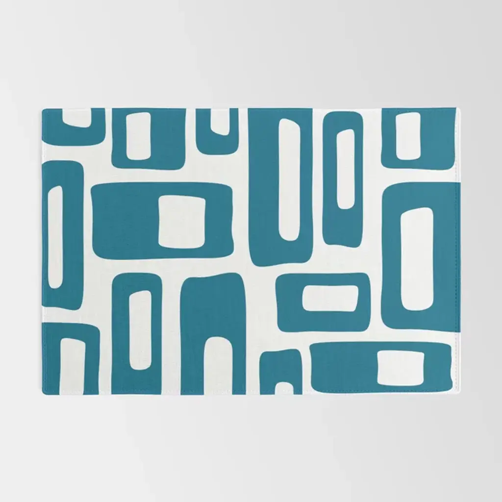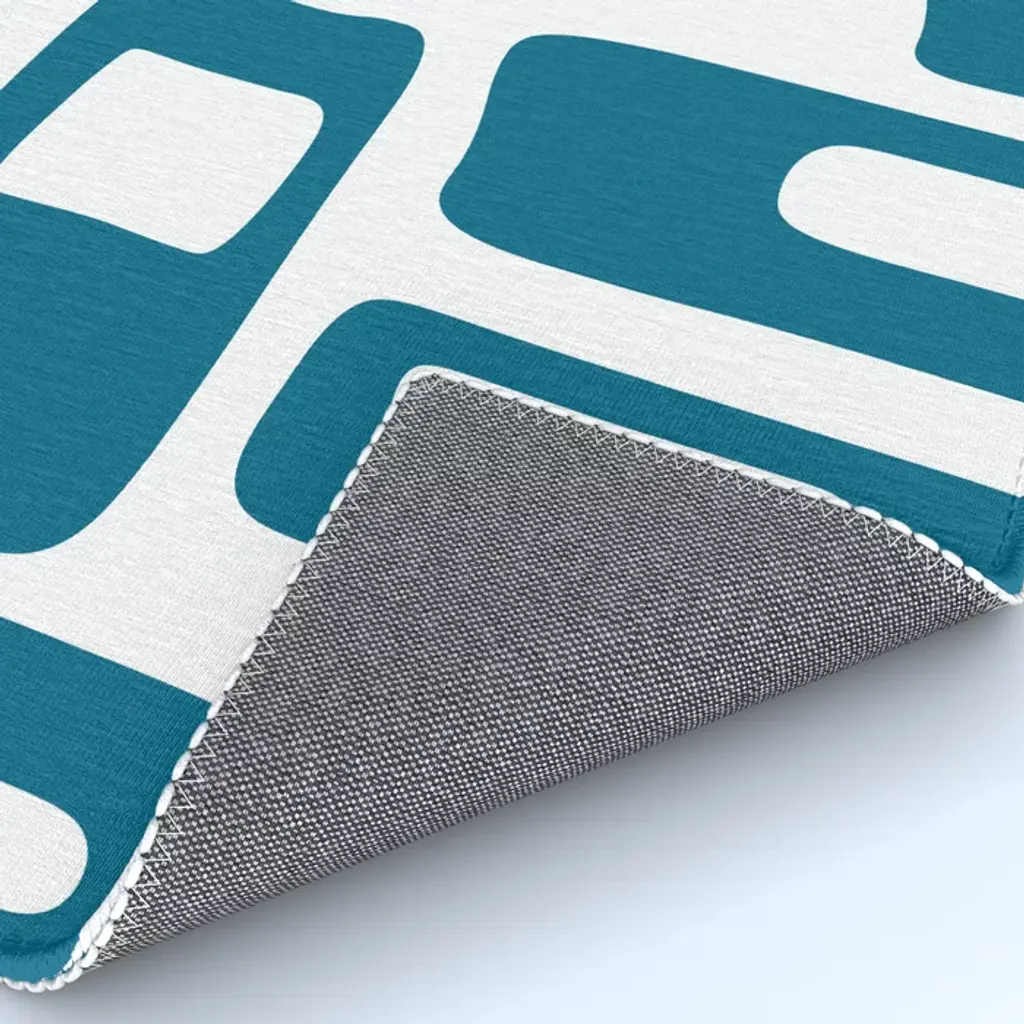 Retro Mid Century Modern Abstract Pattern 336 Peacock Blue Rug