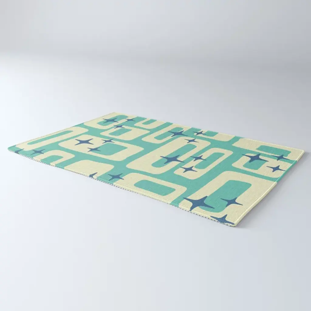 Retro Mid Century Modern Abstract Pattern 576 Turquoise Blue Rug