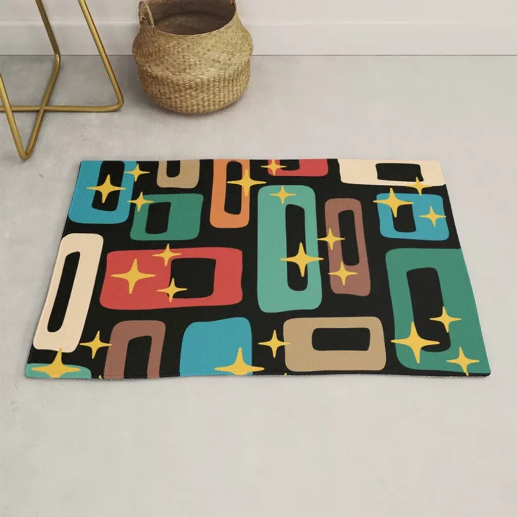 Retro Mid Century Modern Abstract Pattern 921 Googie Orange Chartreuse Turquoise Outdoor Rug