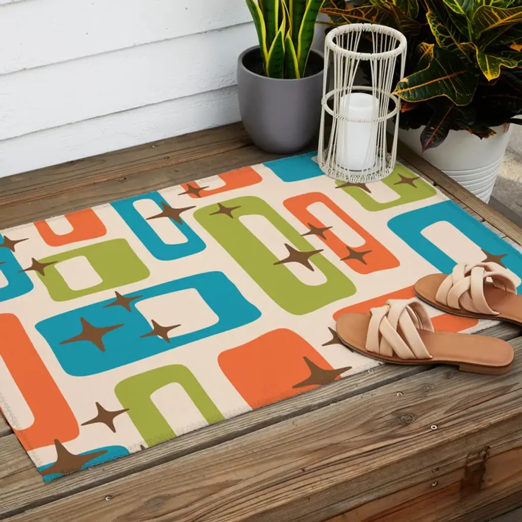 Retro Mid Century Modern Abstract Pattern 921 Googie Orange Chartreuse Turquoise Outdoor Rug