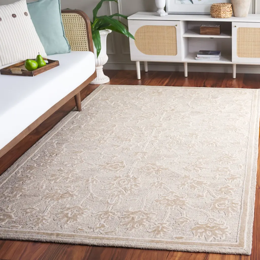 Introducing an area rug that brings timeless elegance to your space. Measuring 4 feet by 6 feet, this piece is designed with a small rectangle shape and a height of three eighths of an inch. The rich navy and ivory colors create a stunning contrast, while the intricate Oriental pattern enhances the rug's traditional style. Hand tufted with skill and expertise in India, this rug features a wool pile known for its soft texture and vibrant appearance. Transform any room with this beautiful rug that adds depth and character to your decor. Whether placed in a living room, bedroom, or study, it offers a charming foundation that complements a variety of furnishings. Experience the blend of artistry and functionality in every detail of this exquisite rug.