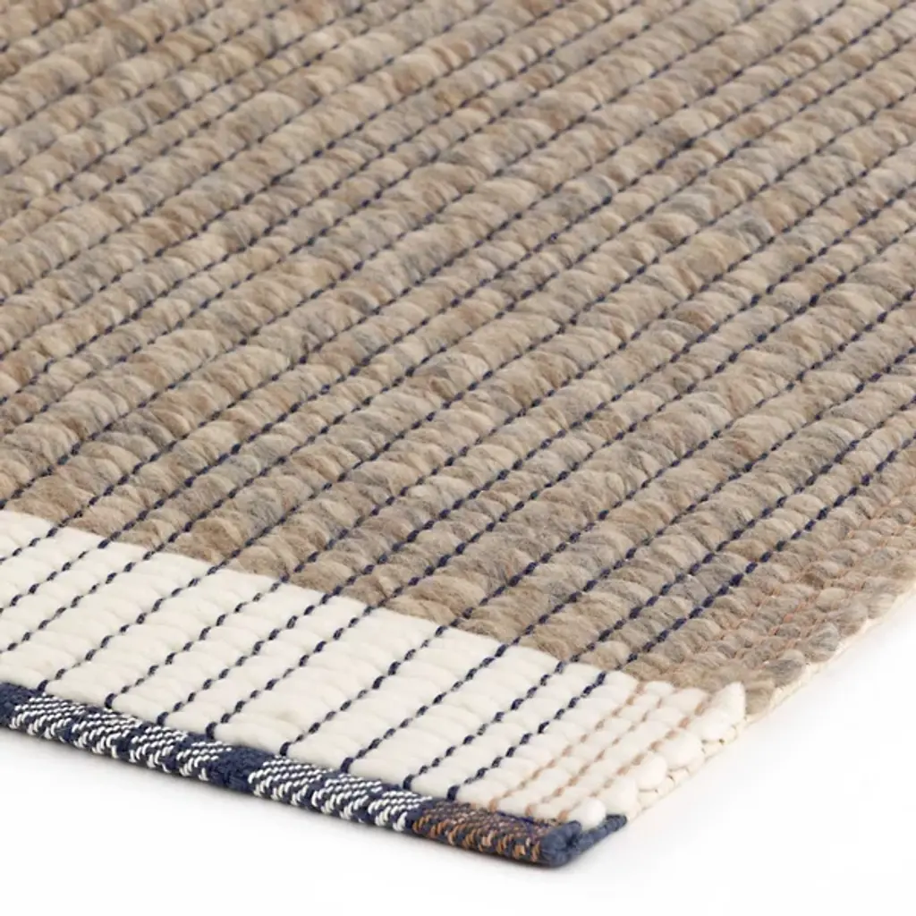 Discover the Reversible Area Rug from Gan Rugs, a versatile art piece designed by Charlotte Lancelot. Hand-loomed with precision, this rug embodies the union of form and function. Comprising a sumptuous blend of 60% wool, 30% linen, and 10% cotton, it provides a comfortable underfoot experience while maintaining durability. With a simple, linear motif, this reversible rug offers boundless design possibilities.