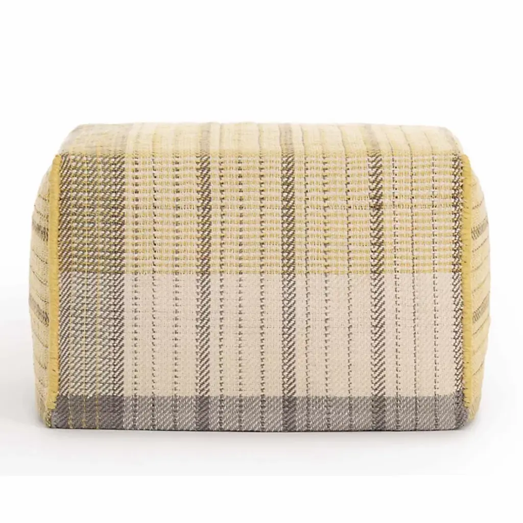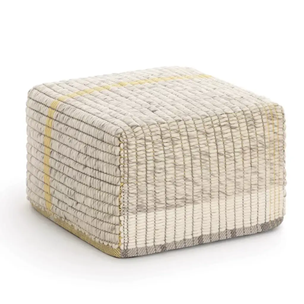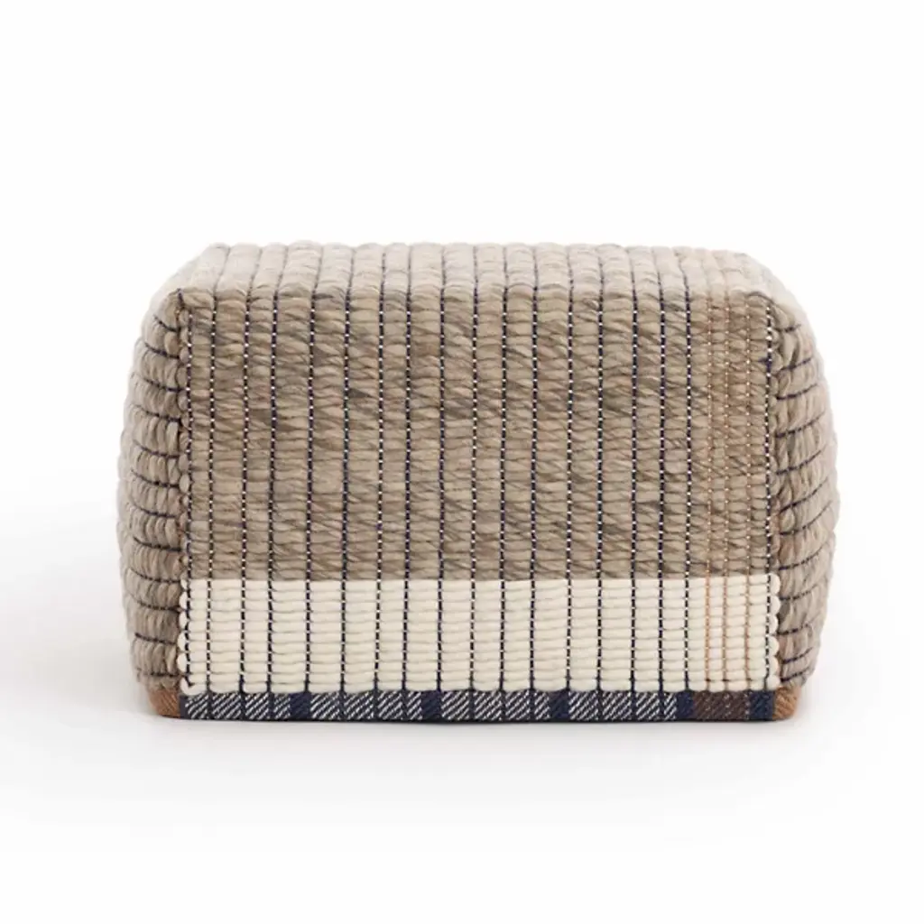 The Reversible Pouf from Gan Rugs was designed by Charlotte Lancelot. This gorgeous piece is meticulously crafted in Spain. The pouf’s bold cubic shape takes center stage, making an impressive statement in your room. With its intricate texture and expertly designed reversible form, it captures your attention. It is made from a luxurious blend of 60% wool, 30% linen, and 10% cotton. This pouf is filled with 100% foam rubber for your comfort.
