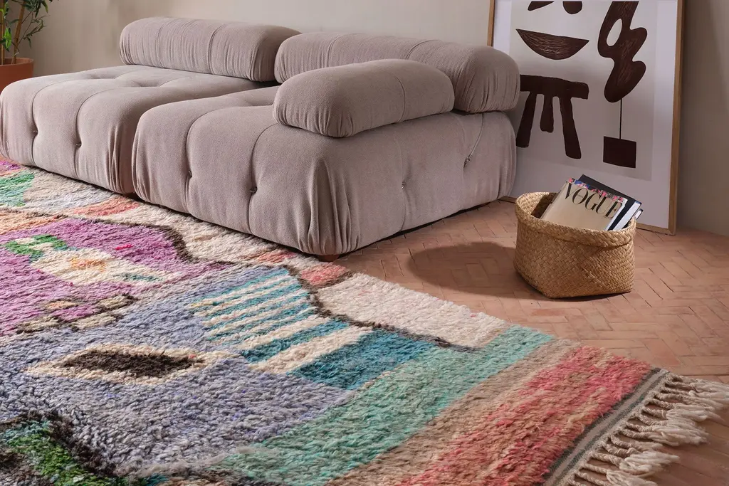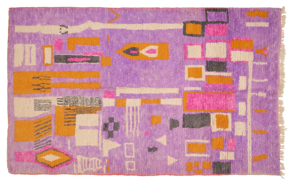 Our Moroccan pieces are each one-of-a-kind. Much of our collection was woven between 30 and 100 years ago, and curated by us. Other rugs in our collection are fresh off the loom and made with traditional techniques. Moroccan rugs don’t come with a key. As with any painting or poem, their motifs have many subjective interpretations. Originally made for personal use, these rugs took months to weave, documenting a shifting tide of events and emotions in the weaver’s life.