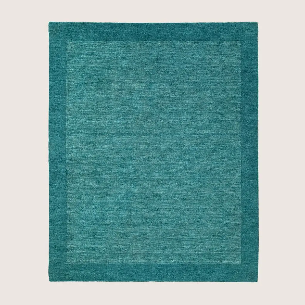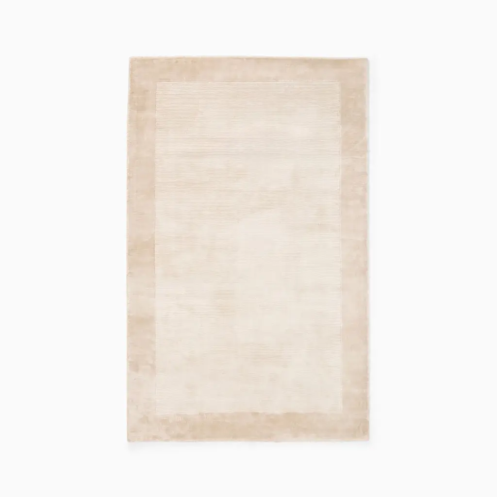 Bare feet. Warm earth. Pure softness underfoot. With a subtle border that frames a field of color, this handloomed wool and cotton rug is art for your floors.