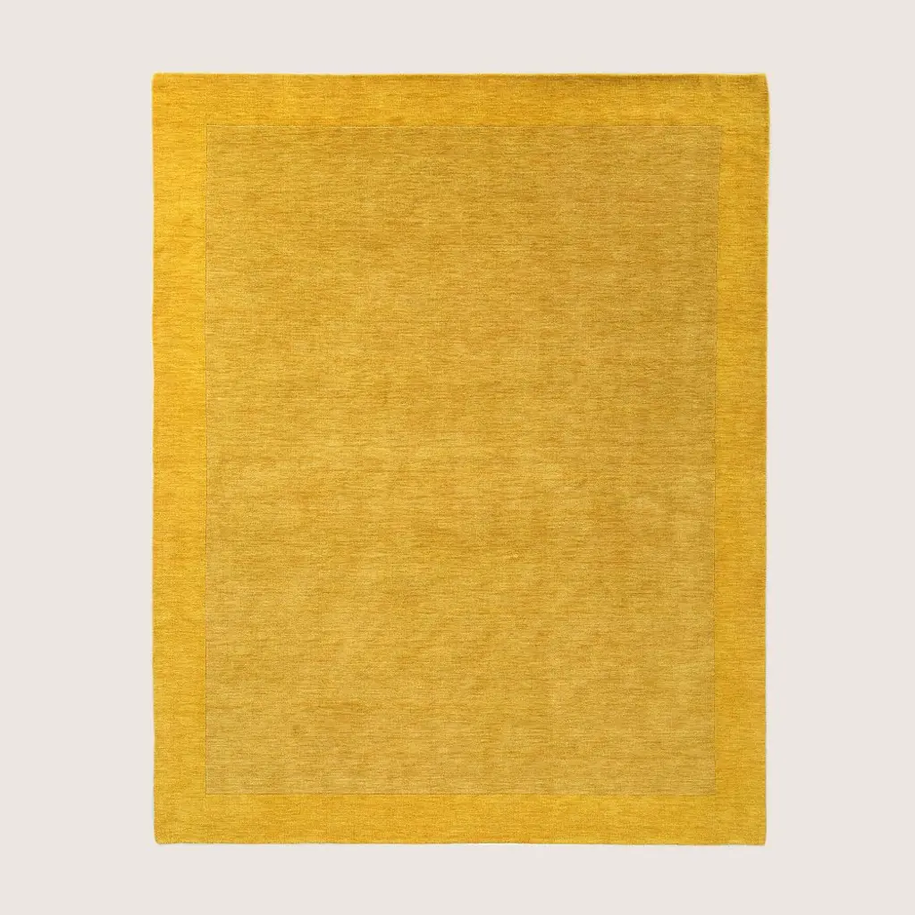 Bare feet. Warm earth. Pure softness underfoot. With a subtle border that frames a field of color, this handloomed wool and cotton rug is art for your floors.