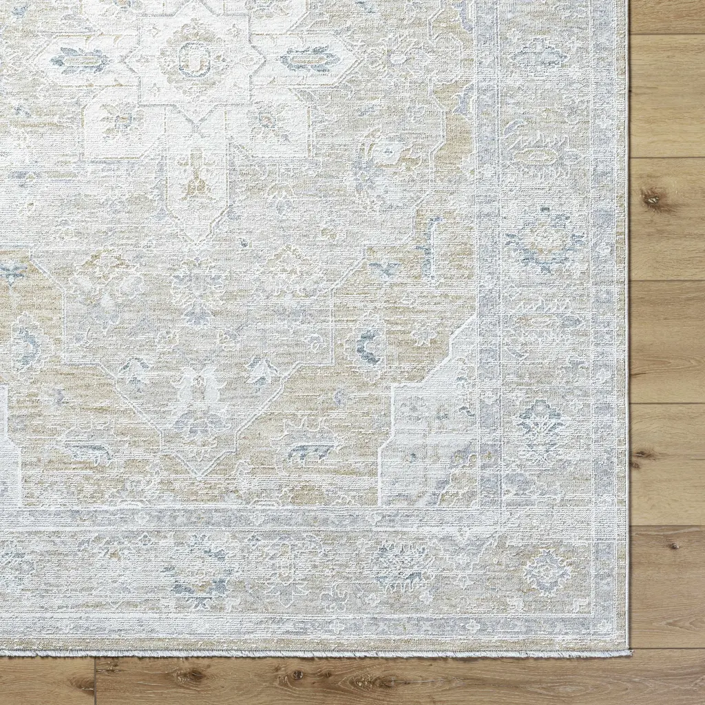 Collection: Rhody Colors: Light Silver, Sterling Gray Construction: Machine Woven Material: 100% Polyester Pile: Medium Pile Pile Height: 0.2" Styles: Traditional Made In: Turkey Thickness: 0.3" Fringe Length: 0.51" Price Range: $$$$$ (Affordable)