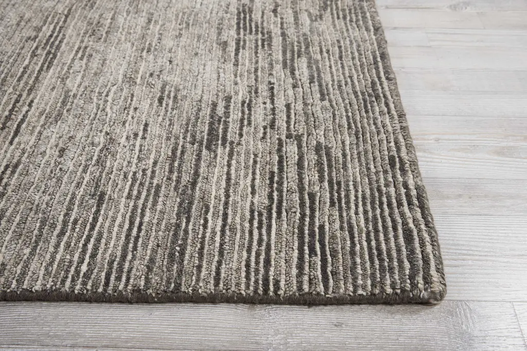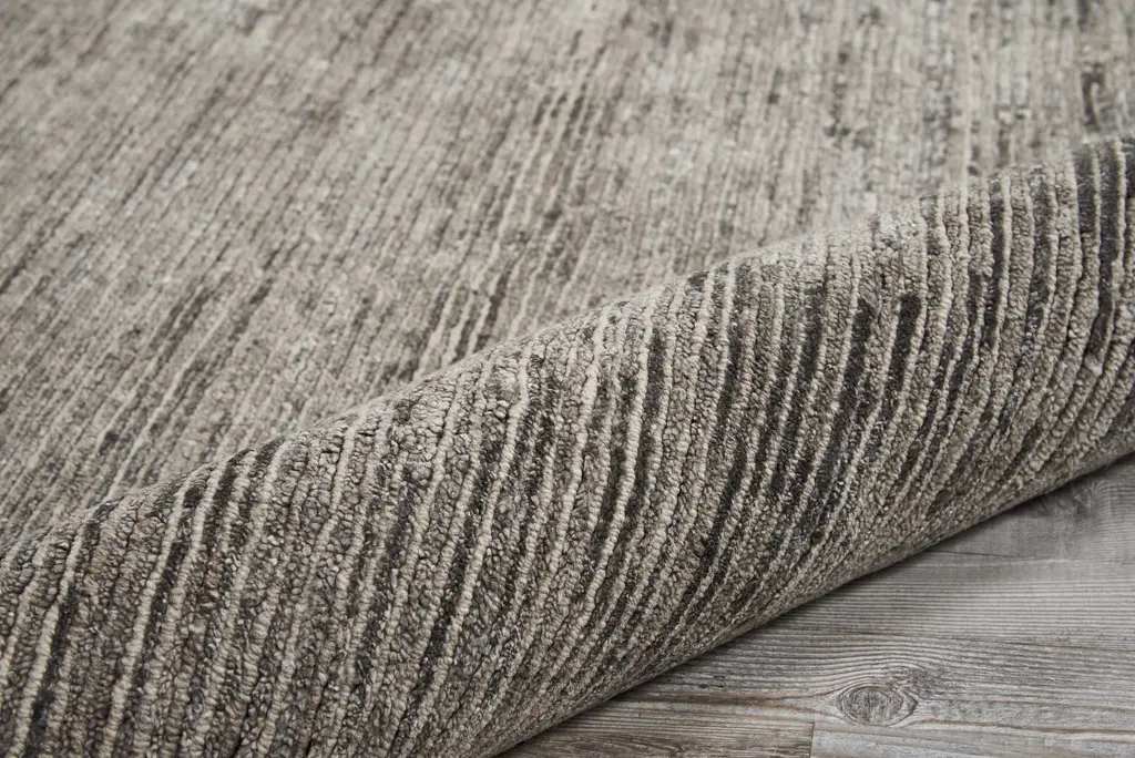 Available in multiple sizes, this luminous rug showcases a ribbed texture that creates subtle waves across its surface while slender lines of crosshatching introduce a modern, graphic touch. Crafted in deep, natural stone tones, this rug reflects a captivating interplay of shadow and light that brings depth and warmth to any room. Perfect as a sophisticated centerpiece, this ribbed rug effortlessly blends contemporary style with natural beauty, creating an inviting and tranquil ambiance in any setting. This piece is perfect for enhancing your space, whether you're considering it for residential or commercial use. Slight variations in color from product to product are natural characteristics of hand-knotted rugs. Your product may not exactly match what is pictured on this page. Due to the detailed construction of our rugs, sizes and colors may vary slightly.