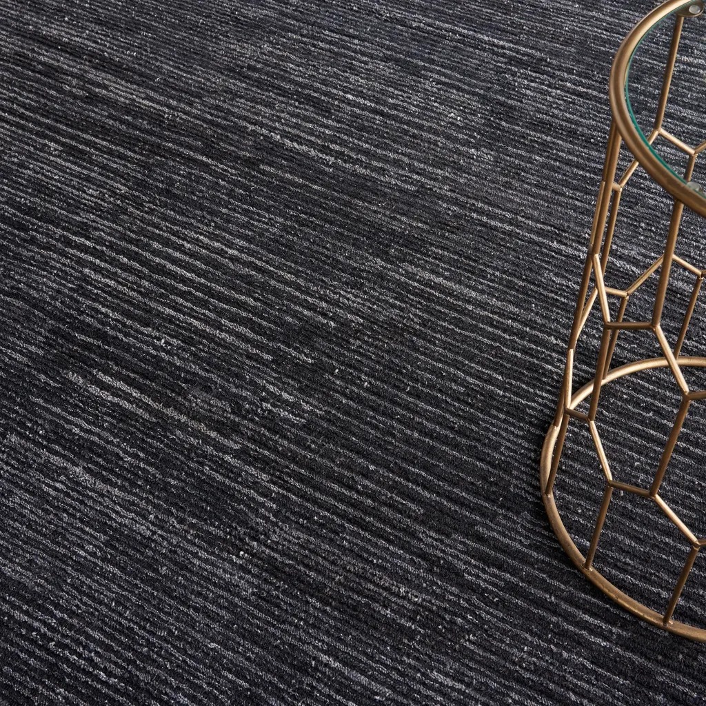 The Ribbed Essentials Rug in Onyx Black stands as a testament to thoughtful design—a piece made for more than just covering floors. Measuring a generous 9'9" x 13'9", it becomes an integral component in any room aspiring to blend size with grace. Whether anchoring a living room, delineating a dining area, or offering warmth to a master suite, this rug achieves an effortless elegance. Its Onyx Black hue serves as a sophisticated foundation, offering versatility across diverse decor styles—from the sleek lines of modern minimalism to the nuanced details of transitional classics. The unique horizontal ribbing doesn't just catch light—it plays with it, creating a dynamic texture that elevates the rug beyond a mere flat surface. It whispers of depth and character, holding intrigue in each glance. Crafted with a blend that balances beauty with resilience, the rug comprises 37% wool, 33% rayon, and 30% linen. The wool adds warmth and a soft touch, while rayon provides a subtle sheen, ensuring the color remains rich and immersive. Linen contributes strength, offering durability that partners well with everyday life’s demands. Handcrafted in India, this rug not only prioritizes style but embraces practicality. The deep black color is forgiving, concealing minor dust and maintaining a tidy appearance with minimal effort. Its presence also offers acoustic benefits, tempering sound to create a more peaceful living environment. This piece accomplishes more than mere decor; it facilitates a balance of refined aesthetics and a no-fuss home life, quietly enhancing its surroundings.
