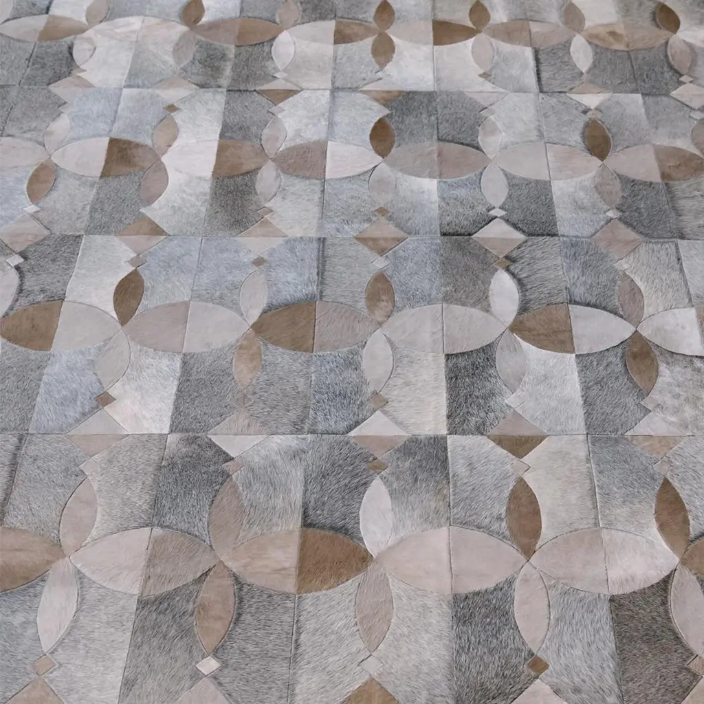 Rich Inky Customizable Cowhide Taupe And Gray Neutral Camino Area Rug Small
