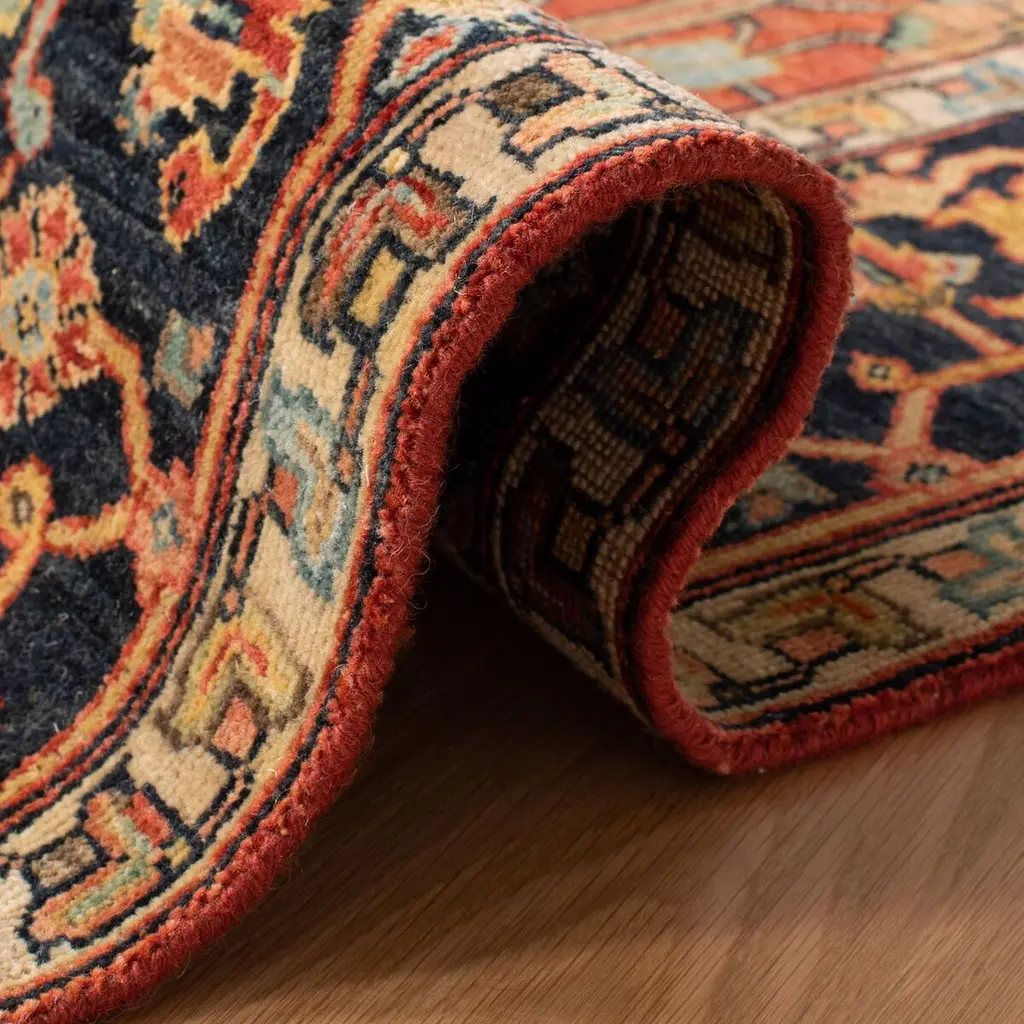 Elevate your living space with this exquisite hand-knotted wool area rug, crafted with precision in India. Spanning a generous 10' X 14' in dimension, this large rectangle rug is a masterpiece of design, featuring a lush vintage red palette that creates an inviting and warm ambiance in any room. The low-profile 1/4" height of the rug ensures a seamless fit under furniture and doors, while the intricate pattern depicted in the image showcases traditional motifs that resonate with timeless elegance. Rich floral and geometric details harmoniously combine to form a visual feast, complemented by a striking border that frames the artistic composition. Expertly constructed using a refined hand-knotted technique, this wool rug is not only a symbol of style but also of durability and longevity. The natural fibers offer a soft, plush feel underfoot, enhancing the luxurious experience this rug provides. Indulge in the old-world charm and sophisticated style of this magnificent area rug, a true testament to the artistry and heritage of Indian craftsmanship. Whether placed in a living room, dining area, or large foyer, this rug is sure to become the centerpiece of your d?cor, radiating elegance and cultural richness.