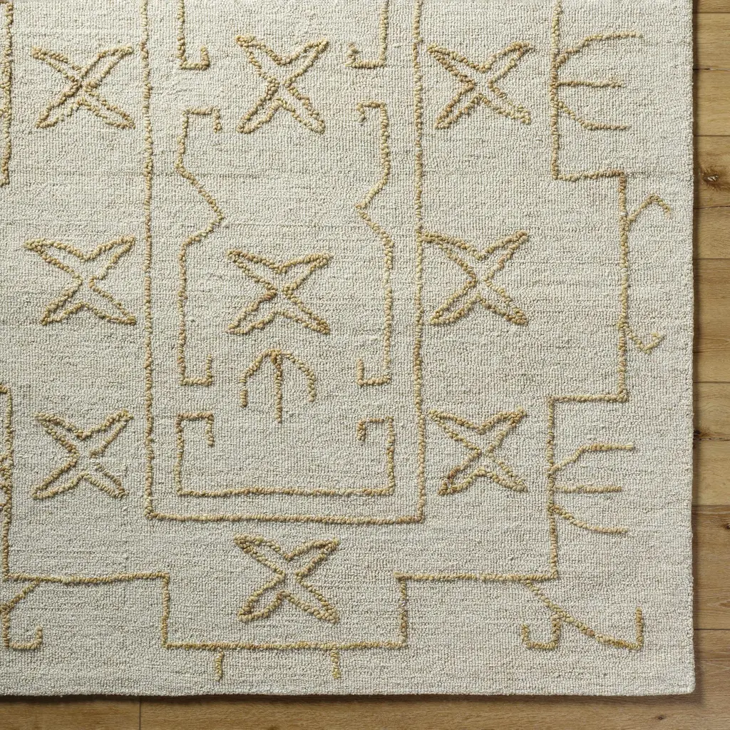 Collection: Rider Colors: Ash, Pearl Construction: Hand Tufted Material: 100% Wool Pile: Medium Pile Pile Height: 0.28" Styles: Contemporary Backing: Canvas Made In: India Thickness: 0.51" Price Range: $$$$$ (Affordable)