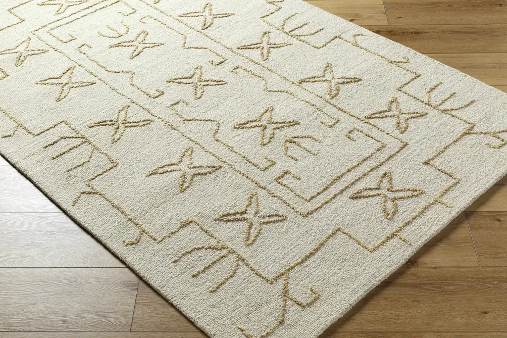 Collection: Rider Colors: Ash, Pearl Construction: Hand Tufted Material: 100% Wool Pile: Medium Pile Pile Height: 0.28" Styles: Contemporary Backing: Canvas Made In: India Thickness: 0.51" Price Range: $$$$$ (Affordable)
