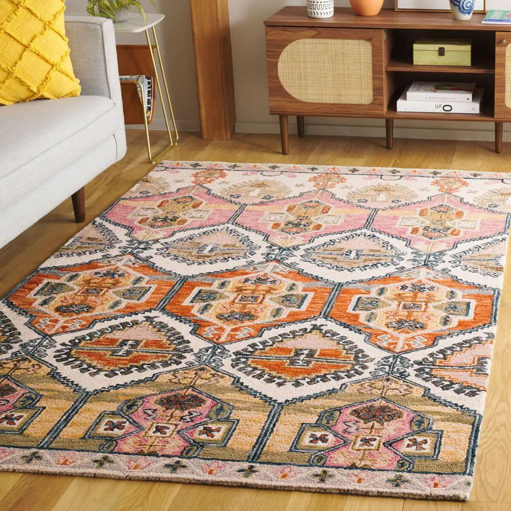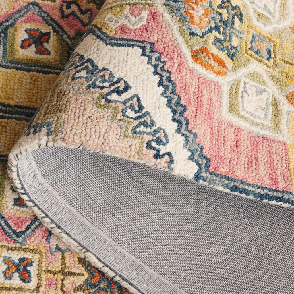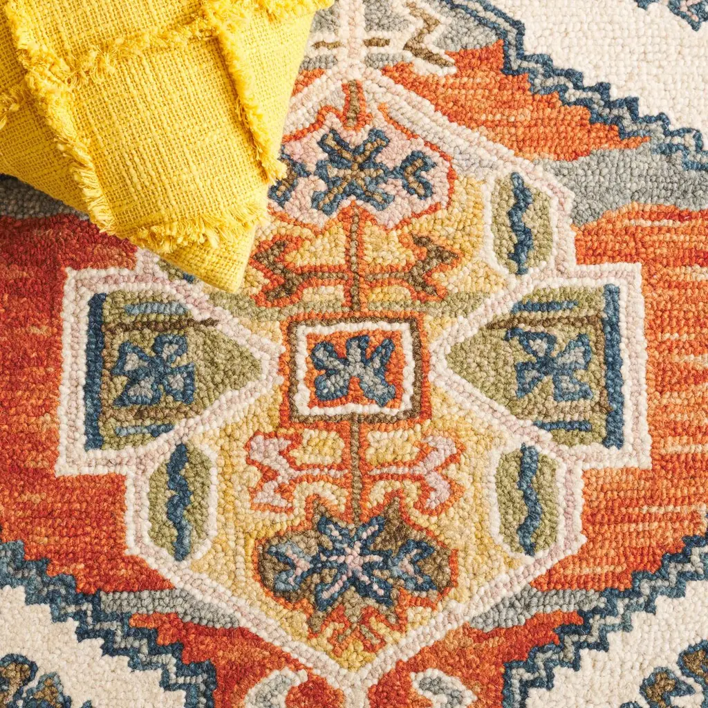 Add a touch of bohemian flair to your space with this exquisite rug. Measuring 3 feet by 5 feet, this small rectangle rug features a vibrant red and ivory color combination that enhances any decor. The geometric pattern lends a modern edge, while the hand tufted weave technique speaks to its meticulous craftsmanship. Made with a wool pile, this rug offers a natural texture and warmth underfoot. Originating from India, it offers a blend of traditional artistry and contemporary style. With its half-inch height, it integrates seamlessly into any room without overpowering other elements. Perfect for adding a soft touch underfoot or introducing a chic visual accent, this rug is a beautiful addition to any home.