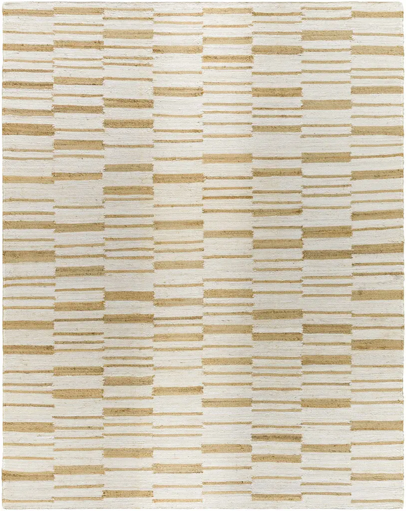 Collection: Rimbo Colors: Cream, Tan Construction: Hand Woven Material: 100% Jute Pile: No Pile Styles: Transitional,Traditional Made In: India Thickness: 0.16" Price Range: $$$$$ (Affordable)