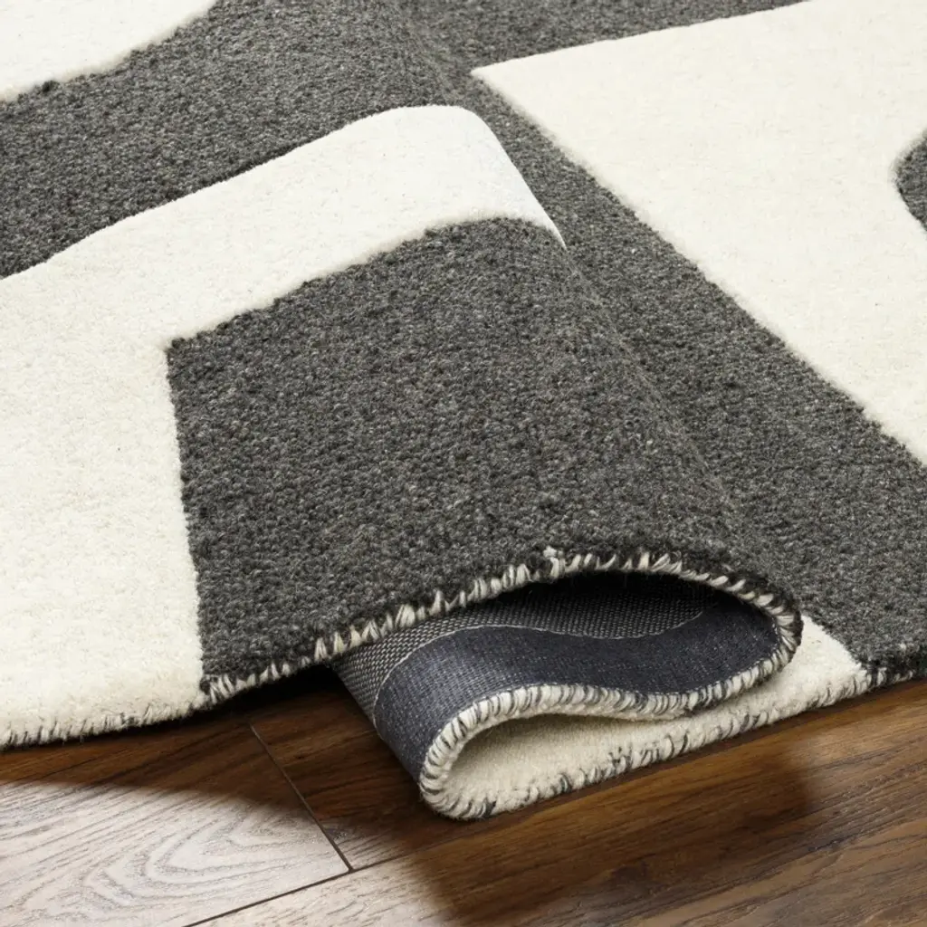 This hand-tufted wool rug adds modern style with its geometric pattern and soft neutral tones in white and gray. The 0.47'' medium pile creates subtle texture and depth, making it a versatile option for a range of interiors – from contemporary to boho or classic. The pattern features gentle contrast that brings visual interest without overwhelming the space. The compact size works well in entryways, kitchens, or small accent areas. We recommend using a rug pad to help prevent any slipping and sliding. We love that it blends clean design with lasting, all-wool construction.