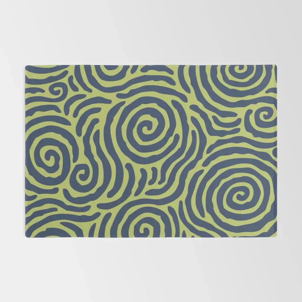 Ripple Effect Pattern Blue And Chartreuse Rug