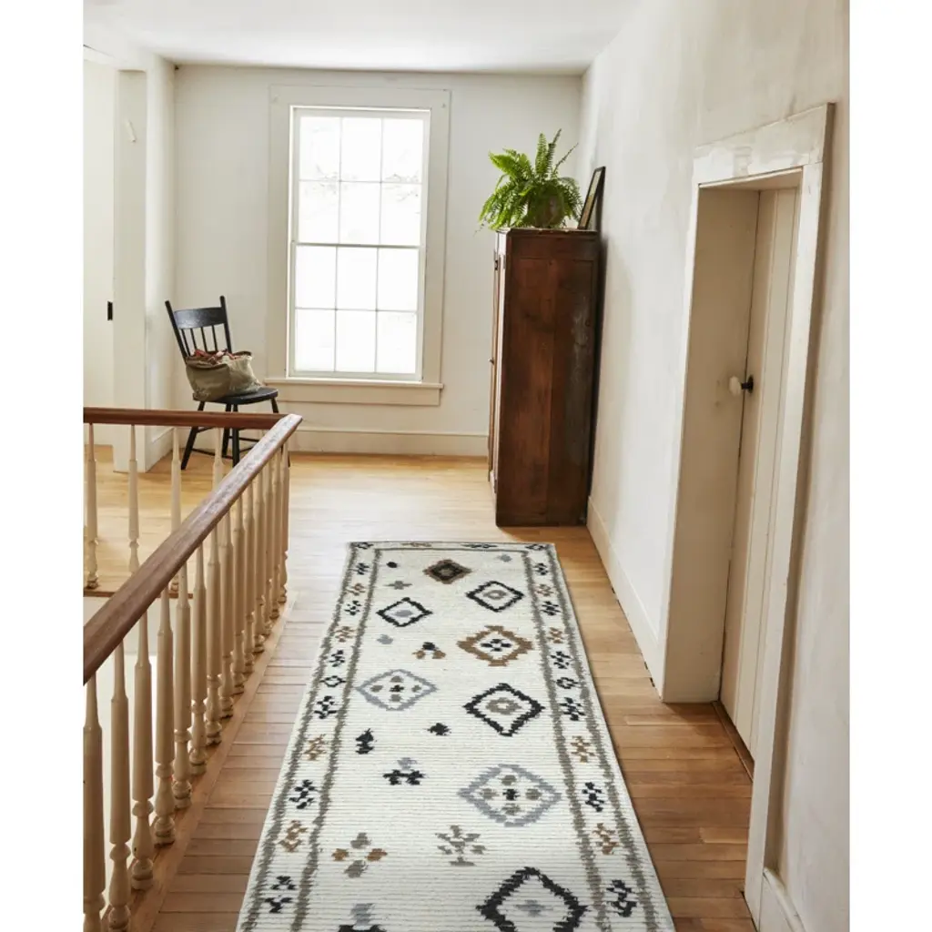 Imagine a weekend getaway to Morocco. Meandering through souk stalls hung with handmade carpets, you come across this rug. Hand-tufted for lasting softness underfoot, it’s the bohemian design you’ll build your living room or bedroom around.