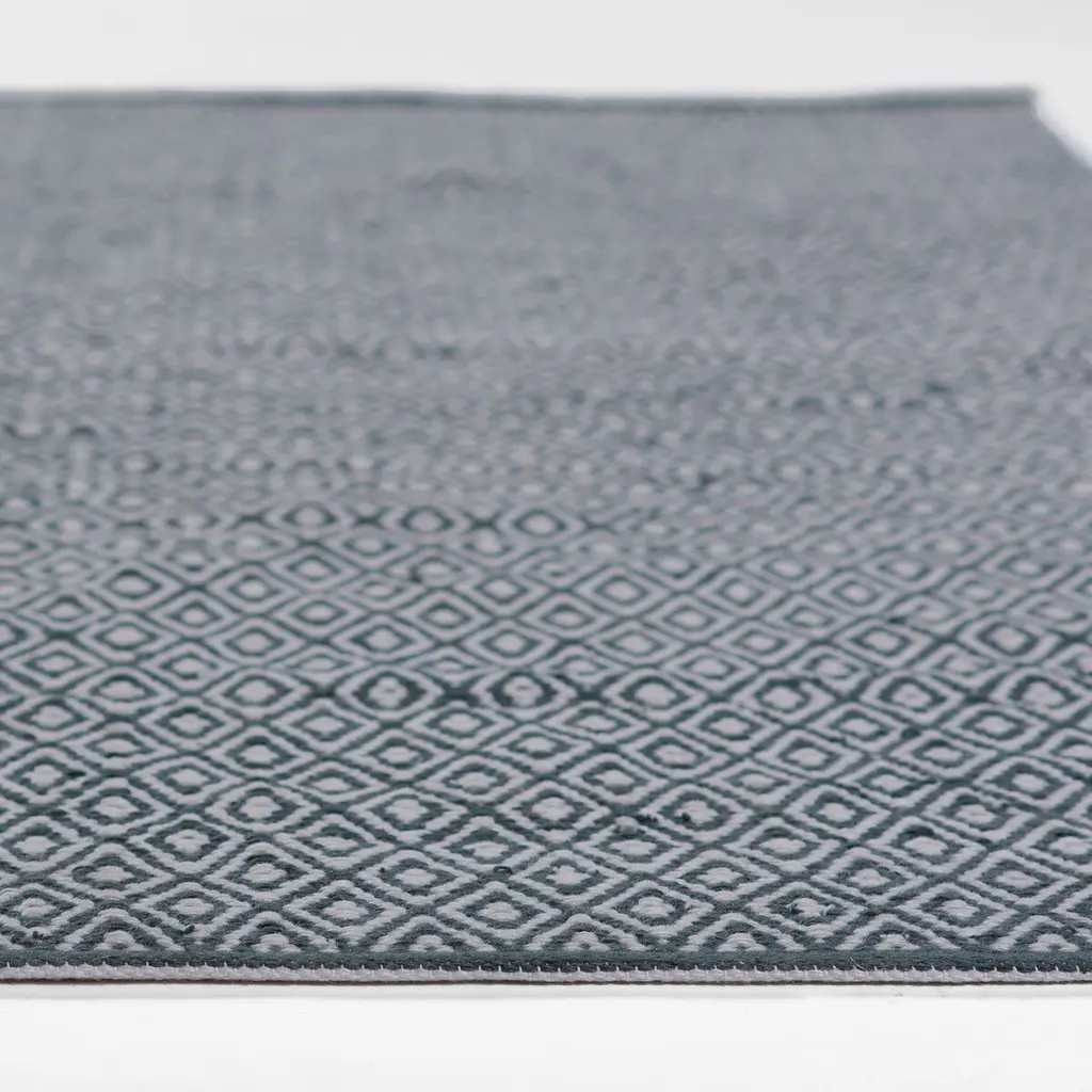 Handwoven of durable PET, this machine-washable flat-weave rug will bring long-lasting style to indoor and outdoor spaces alike. Its diamond motif complements classic and contemporary furnishings alike. A rug pad is recommended to help prevent slipping.