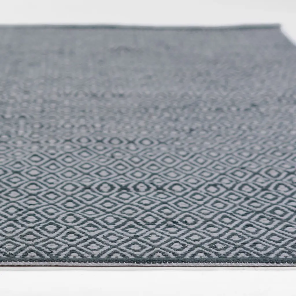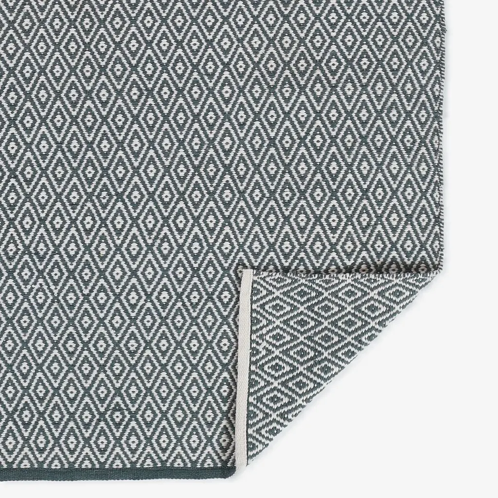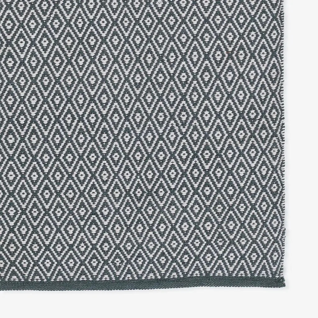 Handwoven of durable PET, this machine-washable flat-weave rug will bring long-lasting style to indoor and outdoor spaces alike. Its diamond motif complements classic and contemporary furnishings alike. A rug pad is recommended to help prevent slipping.