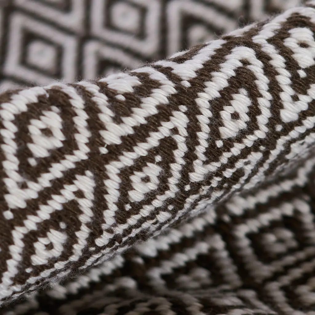 Handwoven of durable PET, this machine-washable flat-weave rug will bring long-lasting style to indoor and outdoor spaces alike. Its diamond motif complements classic and contemporary furnishings alike. A rug pad is recommended to help prevent slipping.