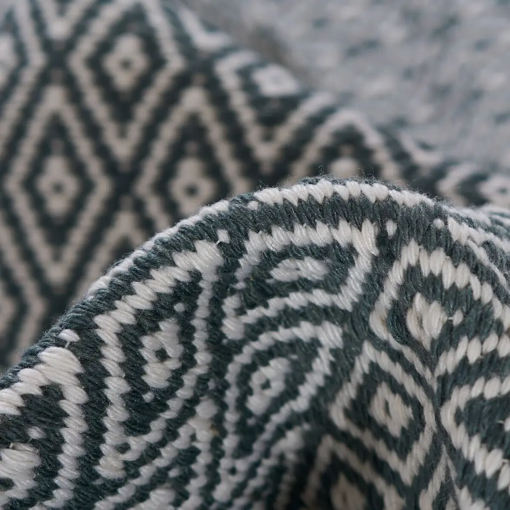 Handwoven of durable PET, this machine-washable flat-weave rug will bring long-lasting style to indoor and outdoor spaces alike. Its diamond motif complements classic and contemporary furnishings alike. A rug pad is recommended to help prevent slipping.