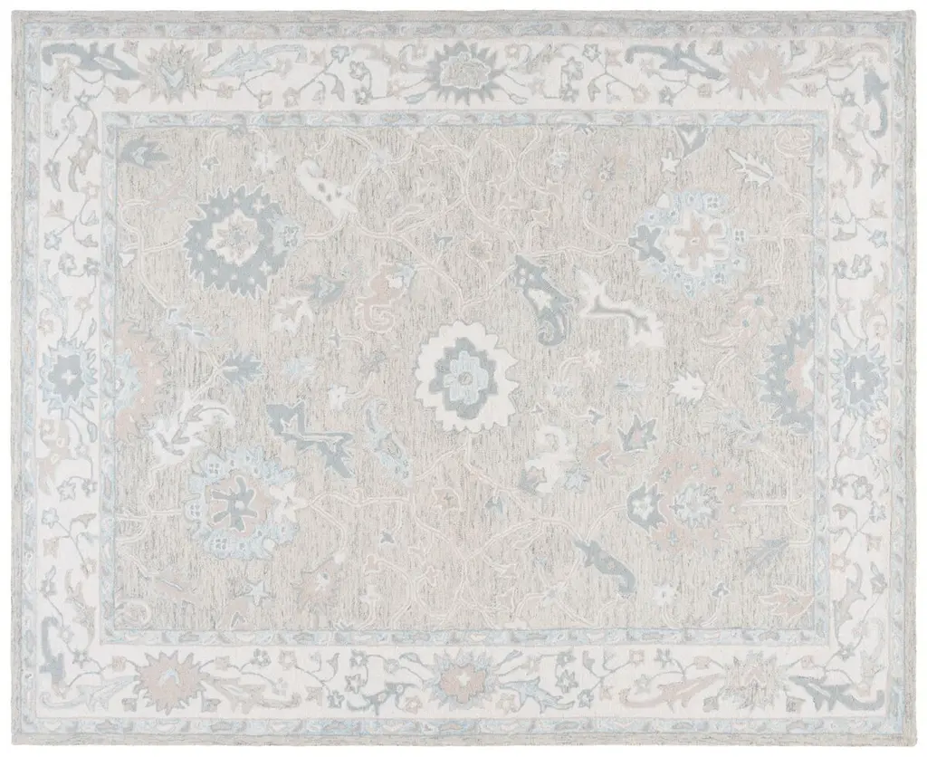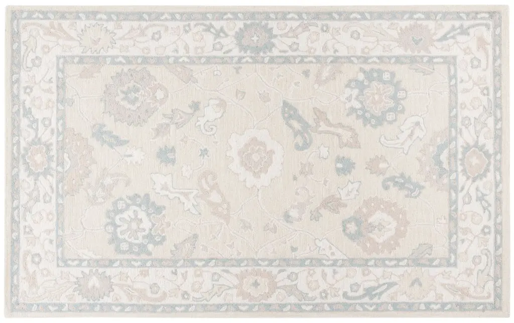 Introducing our exquisite area rug, designed to enrich your living space with elegance and warmth. This 4'0" x 6'0" small rectangular rug features a light grey and ivory palette, creating a serene and inviting atmosphere. Hand-tufted in India, its traditional style and oriental pattern bring timeless charm to your decor. Crafted with a wool pile, it offers a gentle and natural texture underfoot. With a height of three-eighths of an inch, it elegantly complements any room without overwhelming the space. Discover the perfect blend of artistry and comfort with this beautiful addition to your home.