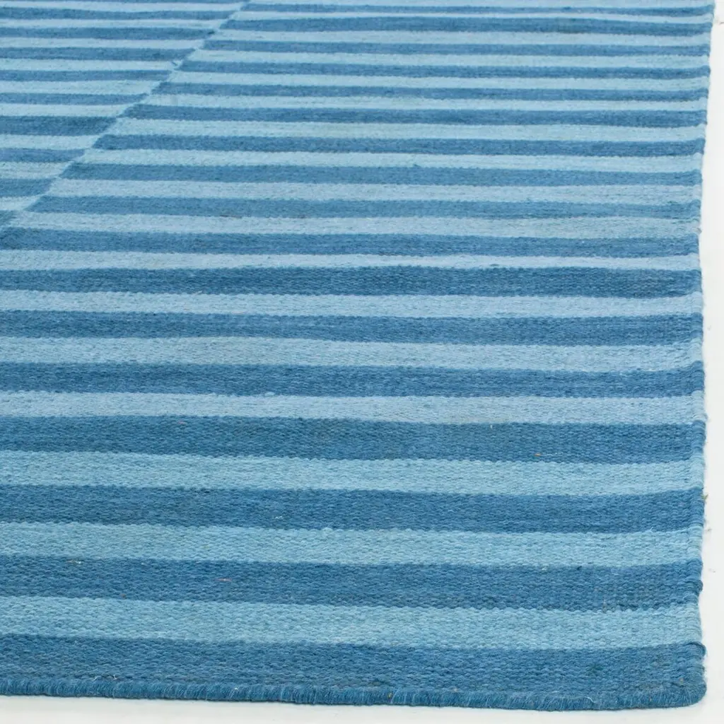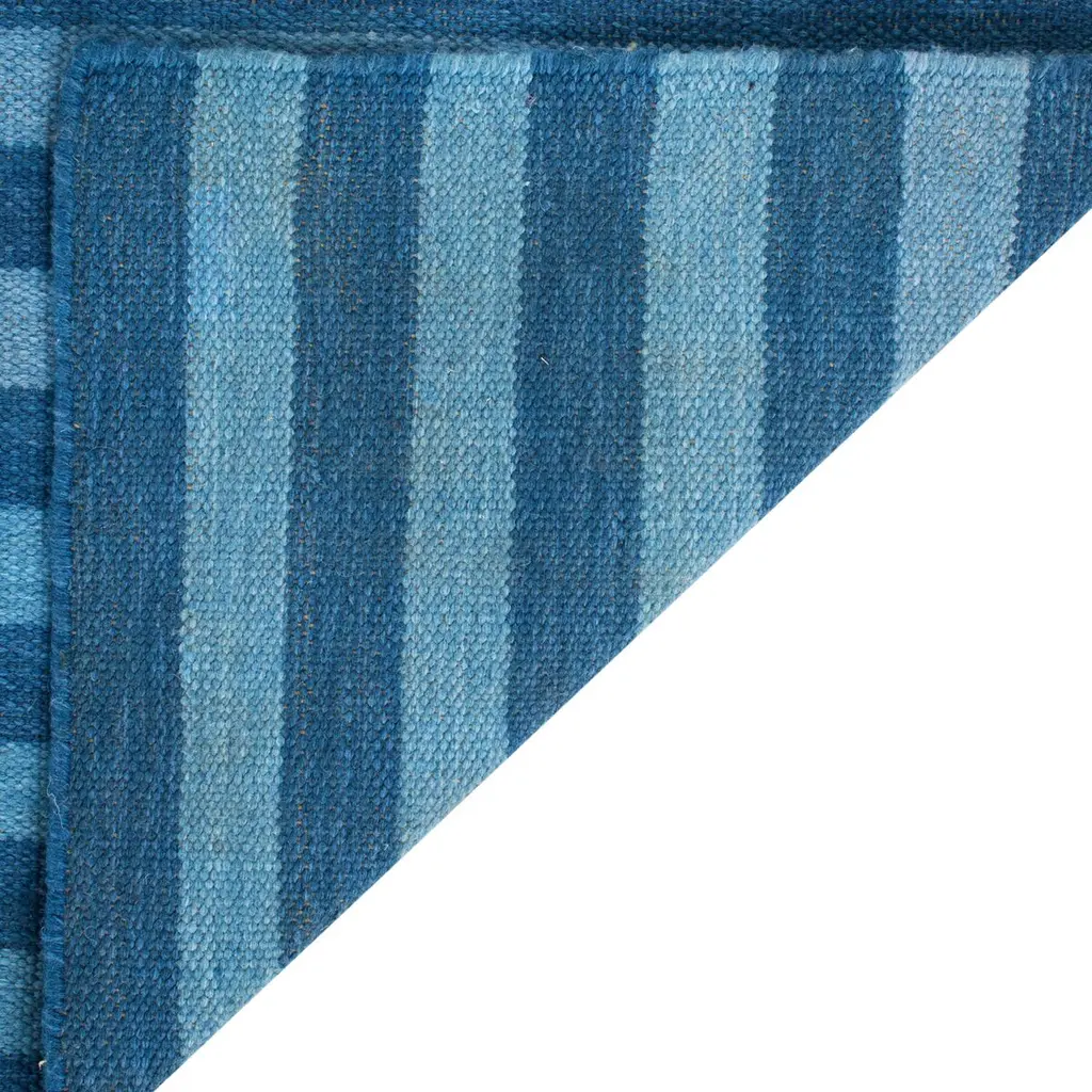 Introducing our Horizon Collection area rug, a serene and stylish addition to any space. This 4' x 6' small rectangle rug features a tranquil striped pattern, capturing the essence of calm seas and clear skies with its gradient of blue hues. The low-profile 1/8" height is perfect for seamless placement in any room, ensuring doors can swing over it easily and feet won't catch. Each strand of this hand-woven masterpiece is meticulously crafted from durable polyester, guaranteeing a soft texture underfoot and long-lasting resilience to daily wear. Constructed with unparalleled attention to detail, this rug echoes the ancient traditions of Indian rug making, bringing a piece of artistic heritage into your home. Whether you're creating a coastal retreat, a minimalist sanctuary, or a contemporary living area, this Horizon area rug is a versatile choice that complements a wide range of interior decors. Its soothing pattern adds a touch of elegance while providing the practicality you seek in a high-traffic area. Reflecting the beauty of the sky at dawn or dusk, it is sure to become a cherished element of your decor scheme.