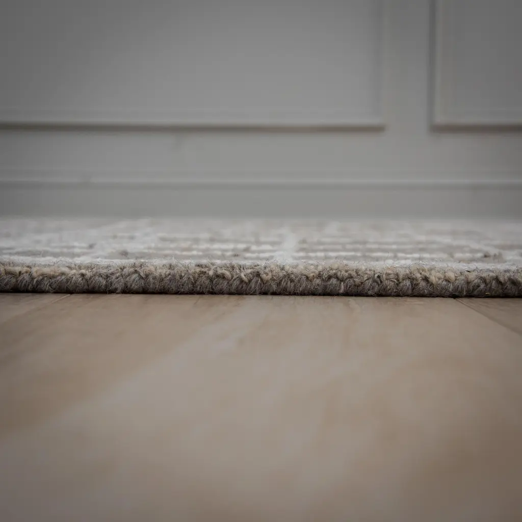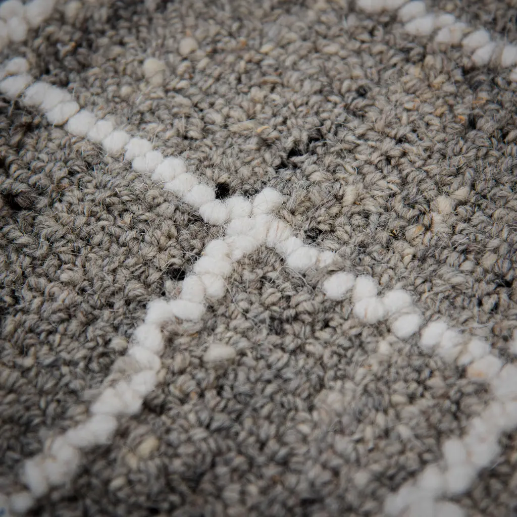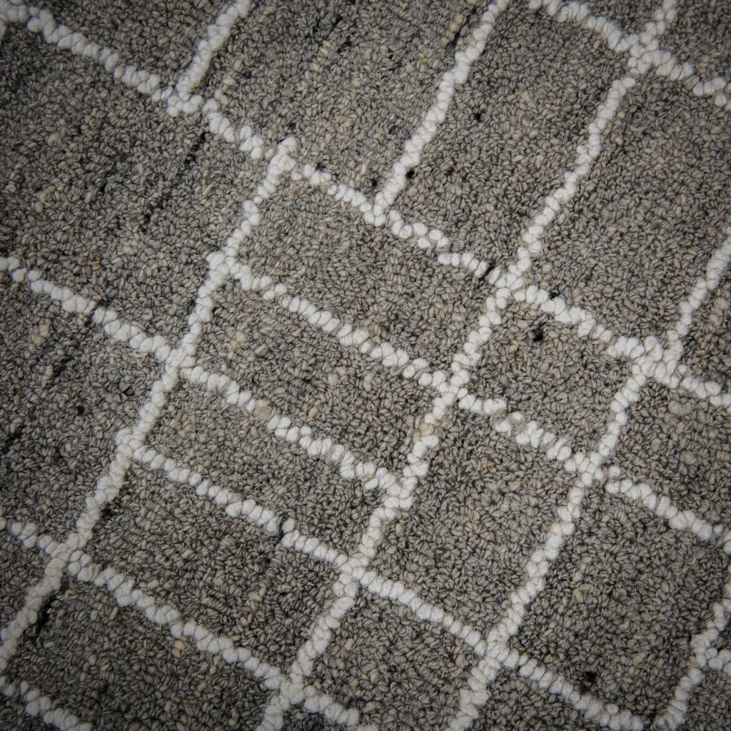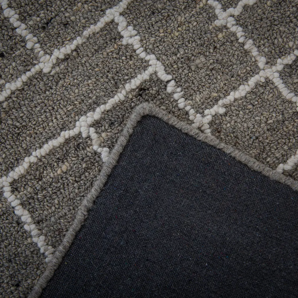 Collection: Lofton Colors: Gray, Ivory Construction: Hand Tufted Material: Face: 100% Wool Pile: High Pile Pile Height: 0.6" Styles: Contemporary Backing: Canvas Made In: India Price Range: $$$$$ (Affordable)