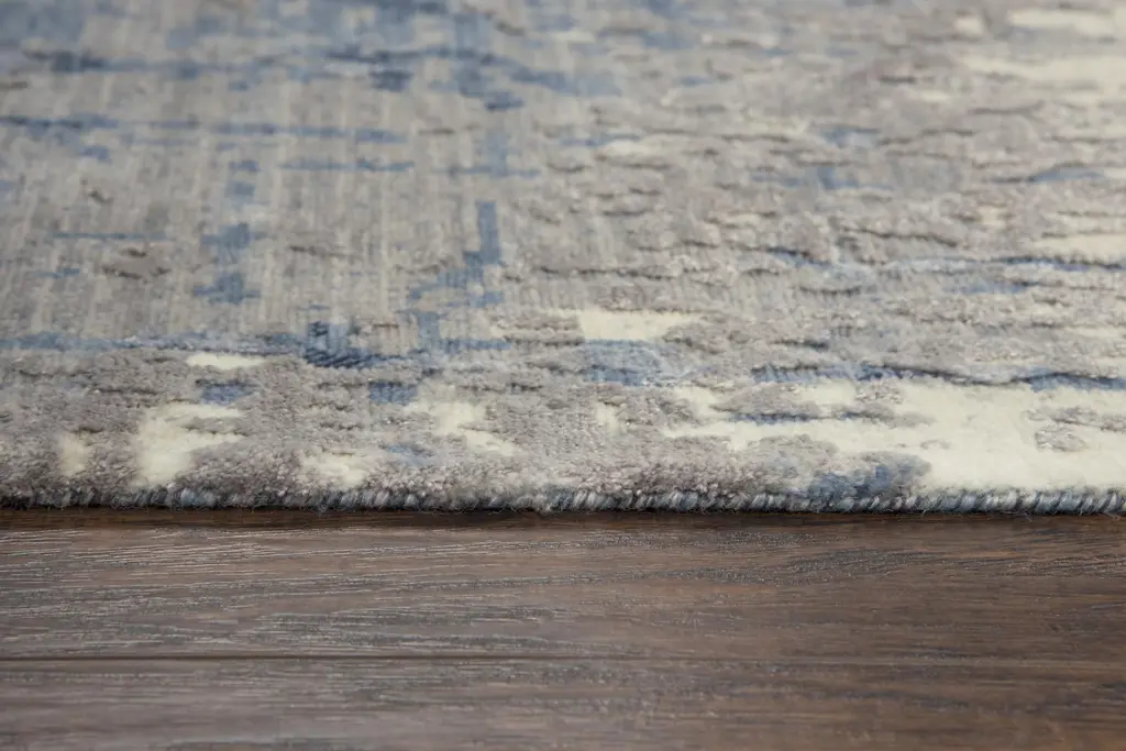 Collection: Artistry Colors: Blue, Ivory, Gray Construction: Machine Woven Material: Face: 80% New Zealand Wool / 20% Tencel / Nylon / Wool blend Pile: Medium Pile Pile Height: 0.5" Styles: Contemporary Backing: Polyester Made In: India Price Range: $$$$$ (Premium)