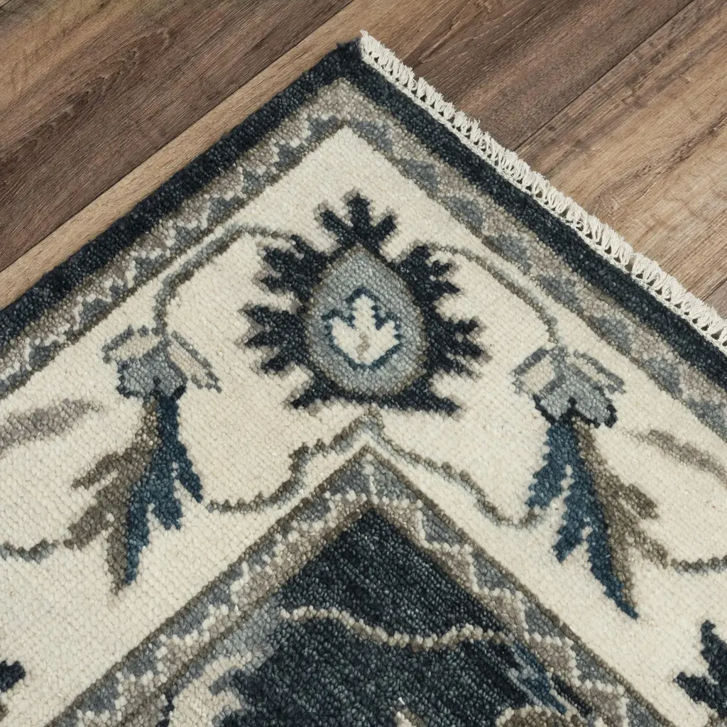 Collection: Ashton Colors: Gray, Beige, Ivory Construction: Hand Knotted Material: Face: 70% Hand Spun Wool / 30% Tencel Blended Pile: High Pile Pile Height: 0.6" Styles: Traditional Made In: India Price Range: $$$$$ (Premium)