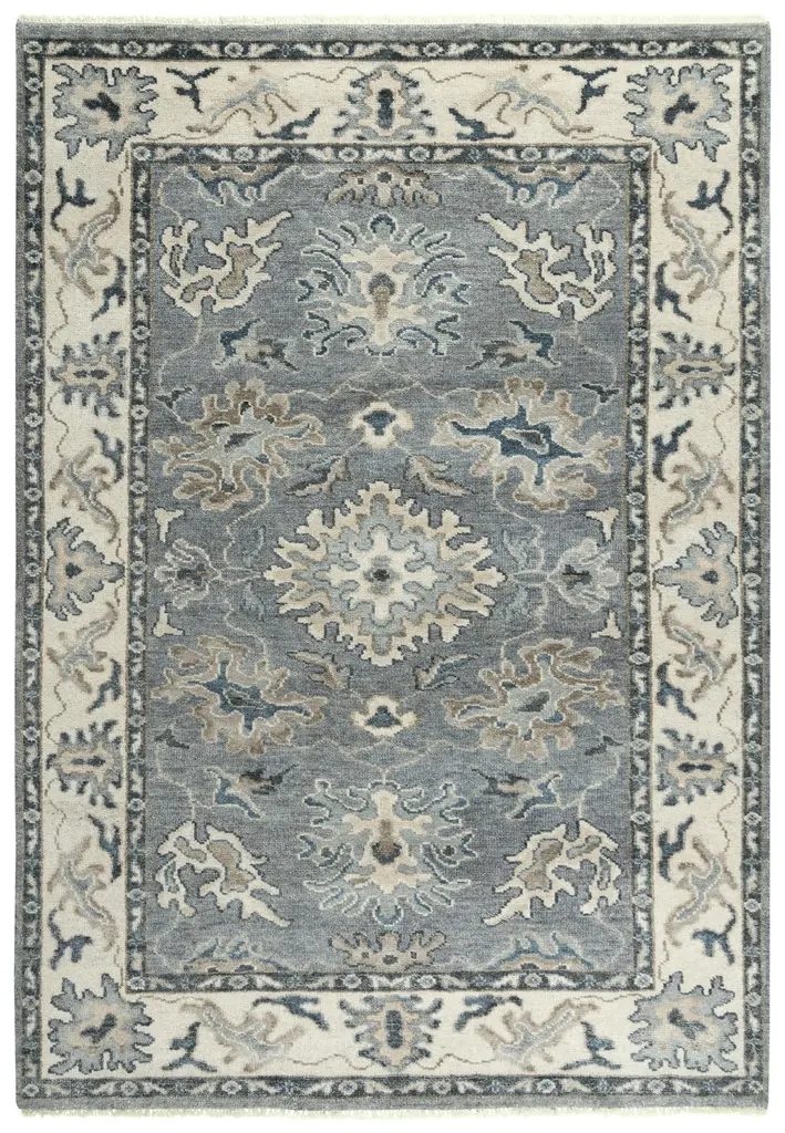 Collection: Ashton Colors: Gray, Blue, Beige, Ivory Construction: Hand Knotted Material: Face: 70% Hand Spun Wool / 30% Tencel Blended Pile: High Pile Pile Height: 0.6" Styles: Traditional Made In: India Price Range: $$$$$ (Premium)