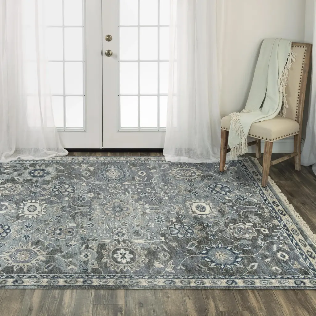 Collection: Ashton Colors: Gray, Blue, Beige, Ivory Construction: Hand Knotted Material: Face: 70% Hand Spun Wool / 30% Tencel Blended Pile: High Pile Pile Height: 0.6" Styles: Traditional Made In: India Price Range: $$$$$ (Premium)