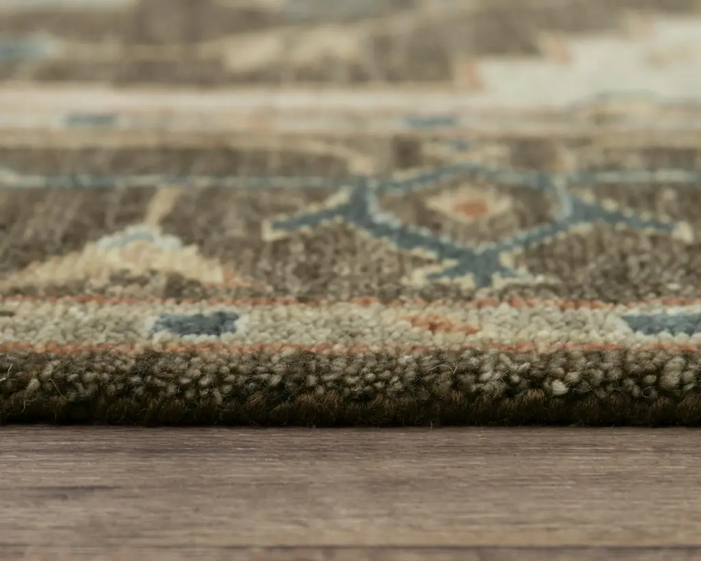 Collection: Belmont Colors: Dark Red, Light Blue, Beige, Rust Construction: Hand Knotted Material: Face: 100% Hand Spun Wool Pile: Medium Pile Pile Height: 0.3" Made In: India Price Range: $$$$$ (Premium)