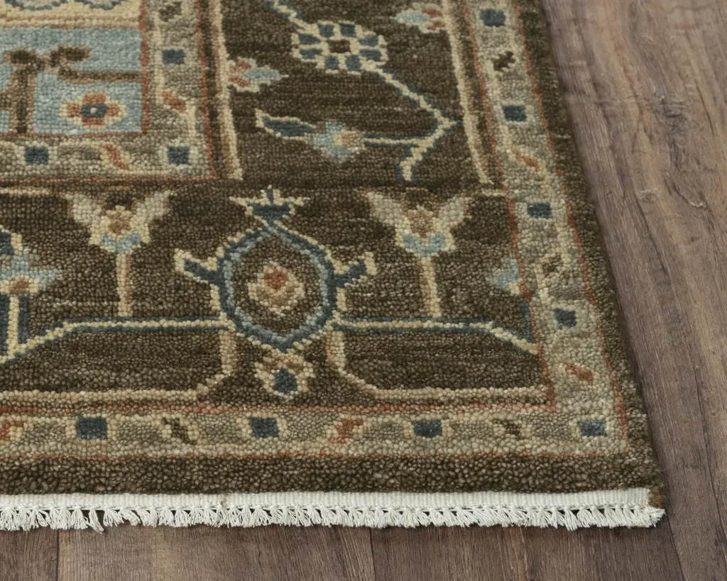 Collection: Belmont Colors: Dark Red, Light Blue, Beige, Rust Construction: Hand Knotted Material: Face: 100% Hand Spun Wool Pile: Medium Pile Pile Height: 0.3" Made In: India Price Range: $$$$$ (Premium)