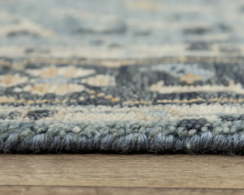 Collection: Belmont Colors: Blue, Beige, Ivory Construction: Hand Knotted Material: Face: 100% Hand Spun Wool Pile: Medium Pile Pile Height: 0.3" Made In: India Price Range: $$$$$ (Premium)