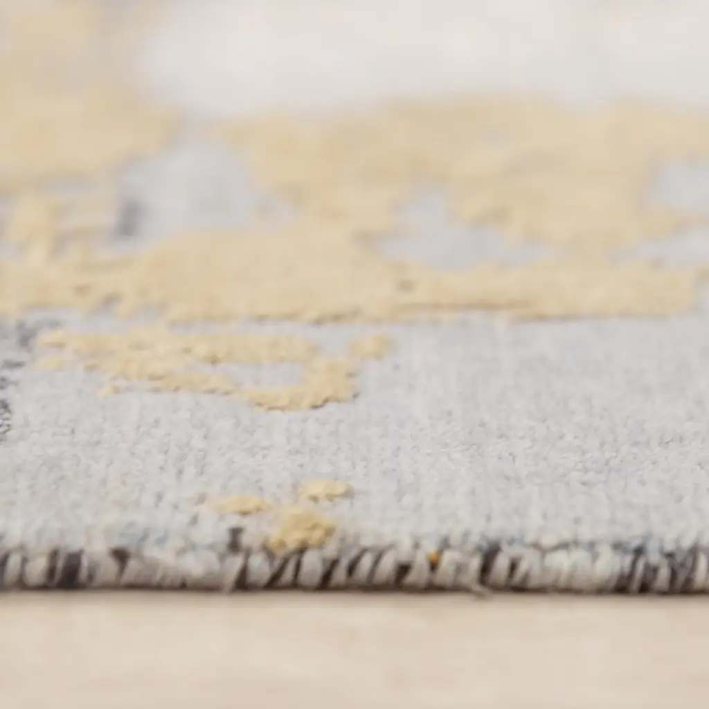 Collection: Bolero Colors: Blue, Light Gray, Gray, Beige, Light Blue Construction: Machine Woven Material: Face: 80% New Zealand Wool / 20% Tencel / Nylon / Wool blend Pile: Medium Pile Pile Height: 0.3" Styles: Contemporary Backing: Polyester Made In: India Price Range: $$$$$ (Premium)