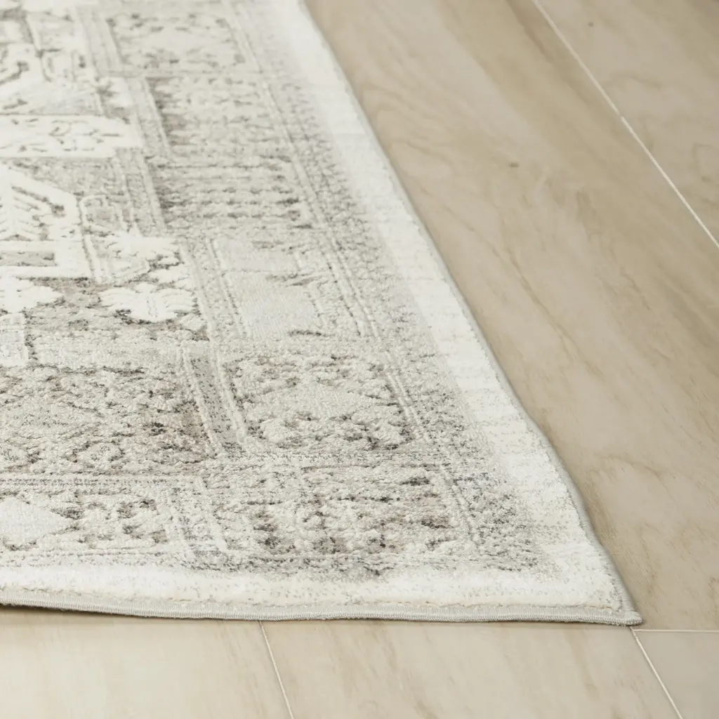 Collection: Calabria Colors: Ivory, Brick Red, Gray Construction: Power Loomed Material: Face: 100% Polyester Pile: Medium Pile Pile Height: 0.3" Styles: Traditional Backing: Jute Made In: Turkey Price Range: $$$$$ (Affordable)