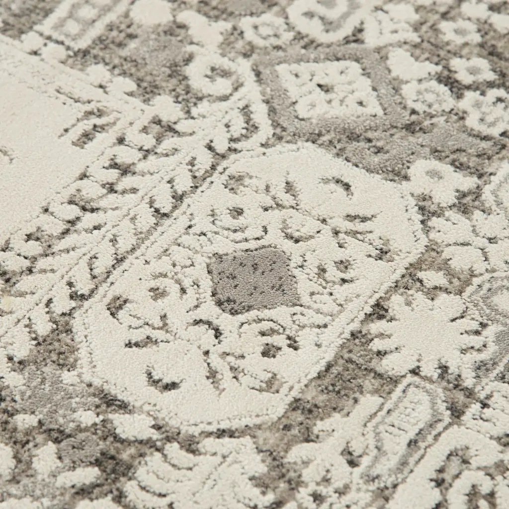 Collection: Calabria Colors: Ivory, Brick Red, Gray Construction: Power Loomed Material: Face: 100% Polyester Pile: Medium Pile Pile Height: 0.3" Styles: Traditional Backing: Jute Made In: Turkey Price Range: $$$$$ (Affordable)