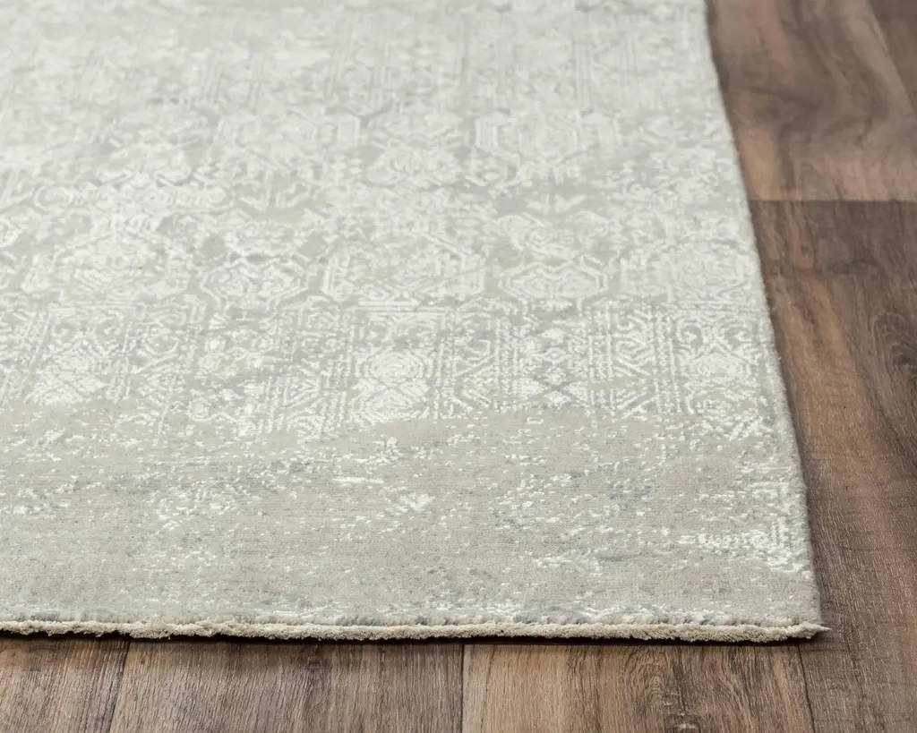 Collection: Couture Colors: Gray, Taupe, Beige Construction: Machine Woven Material: Face: 80% New Zealand Wool / 20% Tencel / Nylon / Wool blend Pile: Medium Pile Pile Height: 0.5" Styles: Transitional,Vintage Backing: Polyester Made In: India Price Range: $$$$$ (Premium)