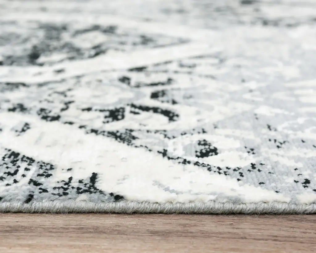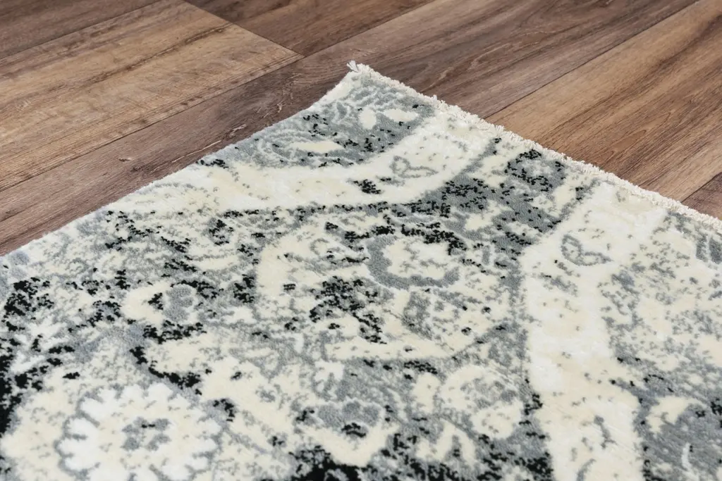 Collection: Couture Colors: Ivory, Black, Gray Construction: Machine Woven Material: Face: 80% New Zealand Wool / 20% Tencel / Nylon / Wool blend Pile: Medium Pile Pile Height: 0.5" Styles: Transitional,Vintage Backing: Polyester Made In: India Price Range: $$$$$ (Premium)