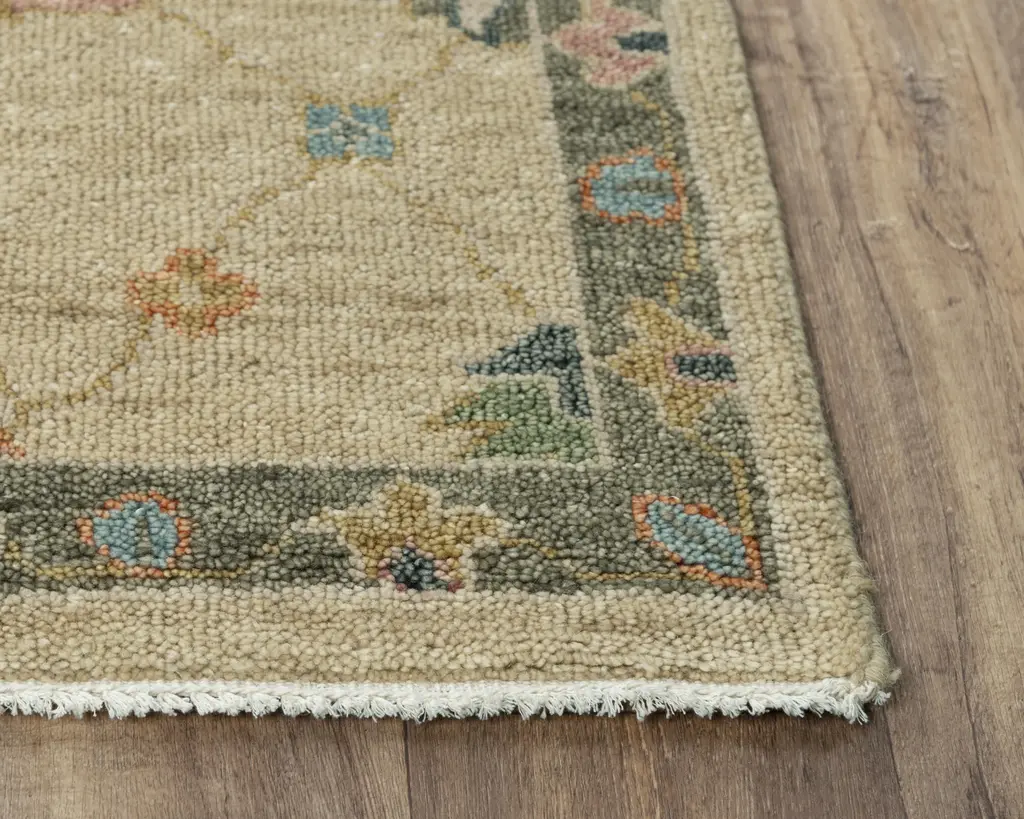 Collection: Envision Colors: Beige, Purple, Orange, Blue, Yellow Construction: Hand Knotted Material: Face: 100% Hand Spun Wool Pile: Medium Pile Pile Height: 0.4" Styles: Traditional,Transitional Made In: India Price Range: $$$$$ (Premium)