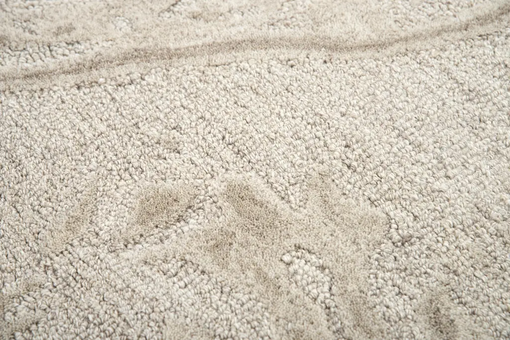 Collection: Fifth Avenue Colors: Beige Construction: Hand Tufted Material: Face: 100% Wool Pile: Medium Pile Pile Height: 0.5" Styles: Casual,Tone on tone Backing: Canvas Made In: India Price Range: $$$$$ (Affordable)