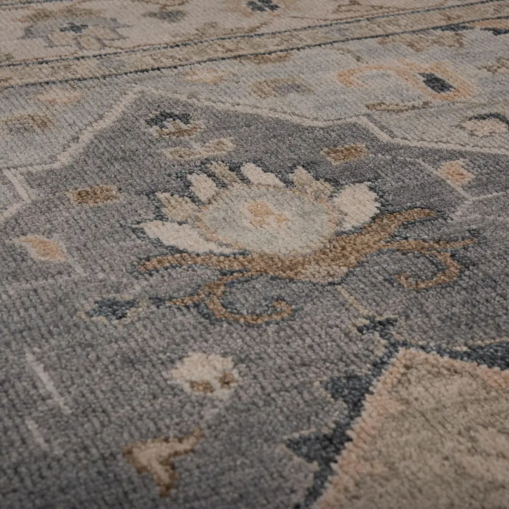 Collection: Hallmark Colors: Gray, Light Gray, Beige, Dark Red, Black Construction: Hand knotted Material: Face: 100% Hand Spun Wool Pile: Medium Pile Pile Height: 1" Styles: Traditional Made In: India Price Range: $$$$$ (Premium)