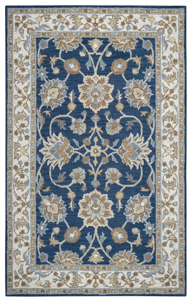 A gorgeous mixture of southwestern and transitional looks the mojave collection by rizzy home will bring a finishing touch to any home. Each rug is hand-tufted by a master artisan from india, who has learned the craft through their entire lifetime. Constructed of 100% hand-tufted wool with a cotton/latex backing this rug is sure to endure through the years to come. The serene palate of this collection enhances the hand-trimmed edges giving this collection an elegant look and feel. Luxurious to the touch, and the depth and dimension of this rug is sure to make anyone catch their breath at first glance. Committed to excellence, the rizzy home team brings together talent, knowledge and passion to create an unparalleled reputation within the home furnishings industry. With a wide assortment of product choice and combinations, rizzy home is making it easier than ever for clients to create homes and interior spaces that are honest expressions of their true personalities.Modern translations of classic southwestern designs, the rugs of the mohave collection are an urbane blend of sophisticated hues and contemporary style. Hand-tufted from a blended new zealand wool that is hand-dyed to create depth through shades of color. These spectacular rugs are full of ultra plush texture. Each rug is a masterful creation that is reminiscent of an ancient gabbeh, sought after for its deep, luxurious cut pileCollection: BellevueConstruction: Power Loomed Double Pointed DesignsMaterial: 100% Heat-Set PolypropyleneRug Backing: JutePrimary Color: BlueSecondary Color: BeigePattern: BorderStyle: TraditionalPile Height: .55"