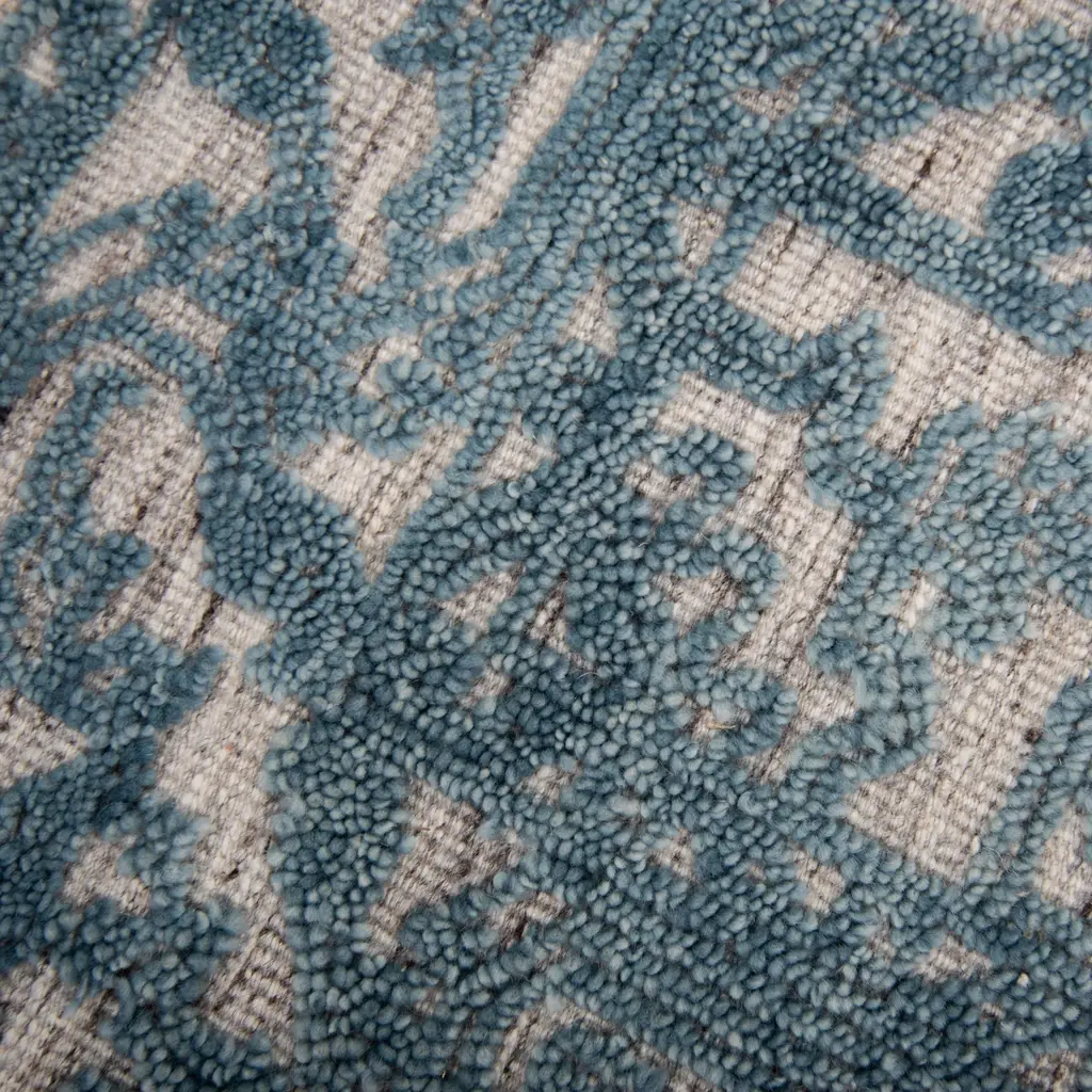 Collection: Hilton Colors: Blue, Gray Construction: Hand knotted Material: Face: 100% Wool Pile: Medium Pile Pile Height: 0.3" Styles: Traditional Made In: India Price Range: $$$$$ (Premium)