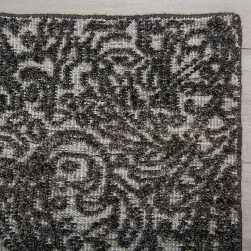 Collection: Hilton Colors: Gray, Ivory Construction: Hand knotted Material: Face: 100% Wool Pile: Medium Pile Pile Height: 0.3" Styles: Traditional Made In: India Price Range: $$$$$ (Premium)