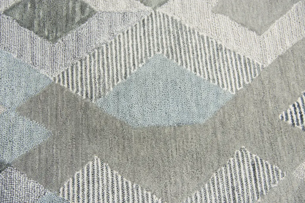 Collection: Idyllic Colors: Gray, Taupe, Beige, Light Blue, Light Gray Construction: Hand Tufted Material: Face: 100% Wool Pile: High Pile Pile Height: 0.6" Styles: Contemporary Backing: Canvas Made In: India Price Range: $$$$$ (Premium)