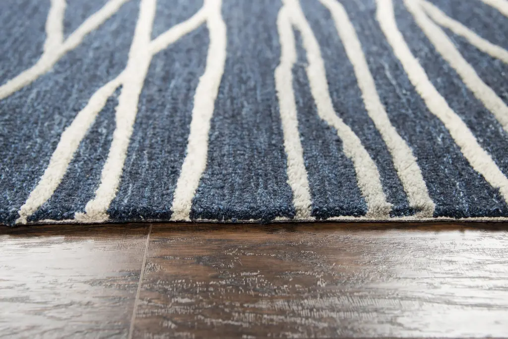 Collection: Idyllic Colors: Blue, Ivory Construction: Hand Tufted Material: Face: 100% Wool Pile: High Pile Pile Height: 0.6" Styles: Contemporary Backing: Canvas Made In: India Price Range: $$$$$ (Affordable)
