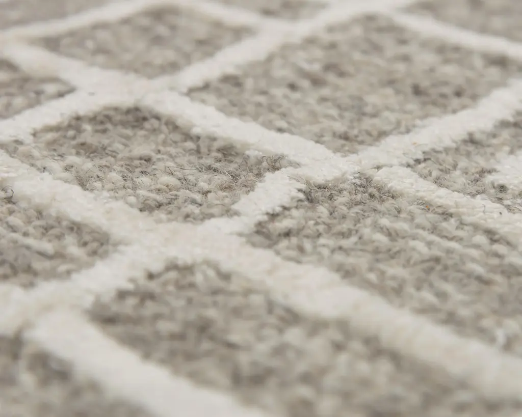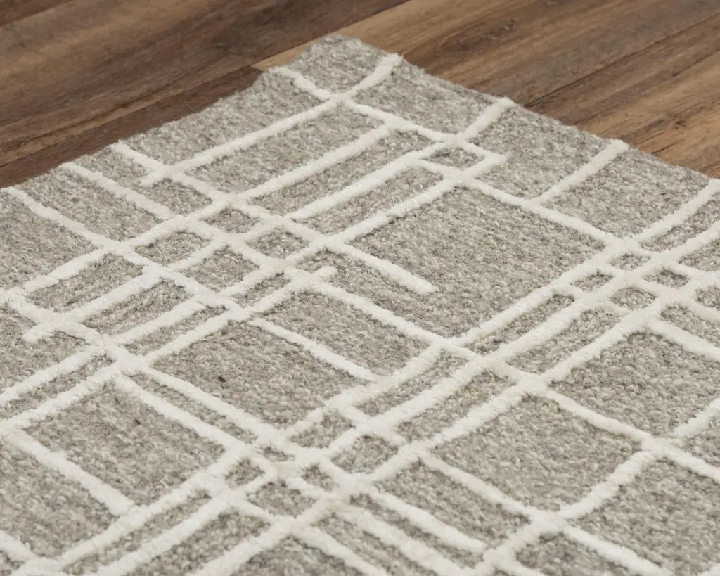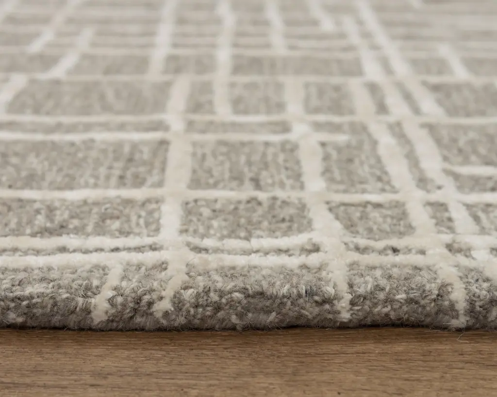Collection: Jazz Colors: Gray, Ivory Construction: Hand Tufted Material: Face: 80% Wool / 20% Tencel Pile: High Pile Pile Height: 0.6" Styles: Contemporary Backing: Canvas Made In: India Price Range: $$$$$ (Affordable)